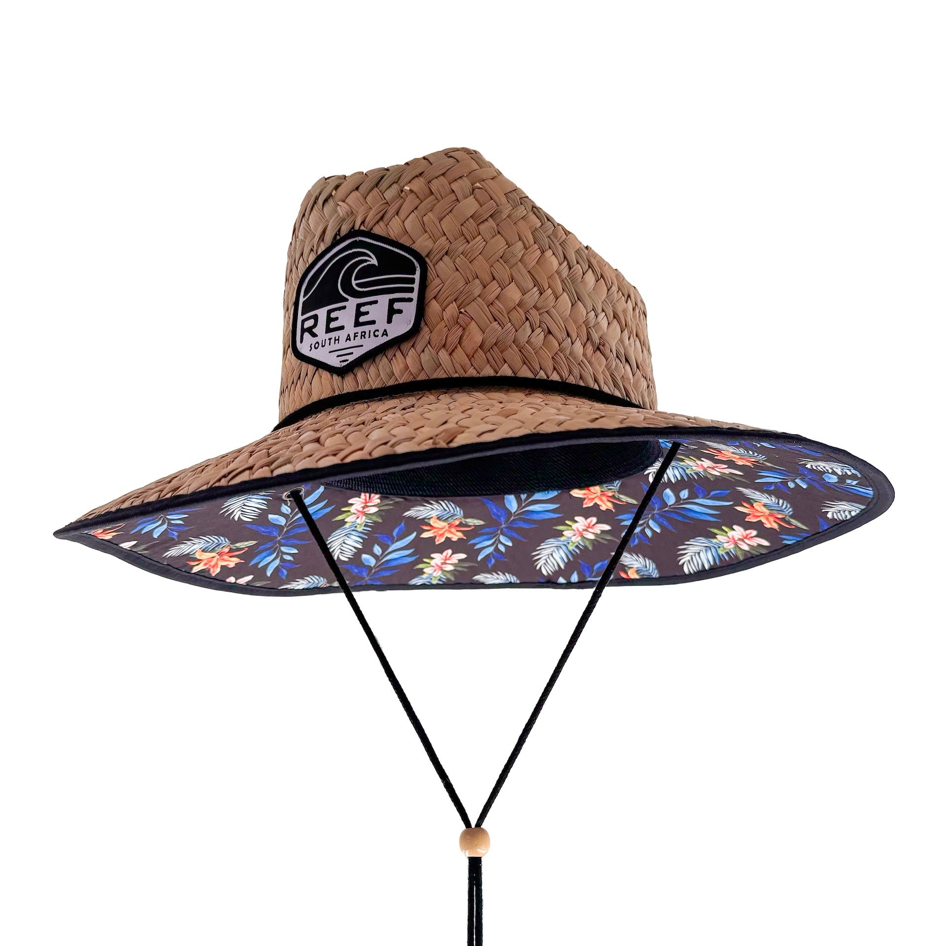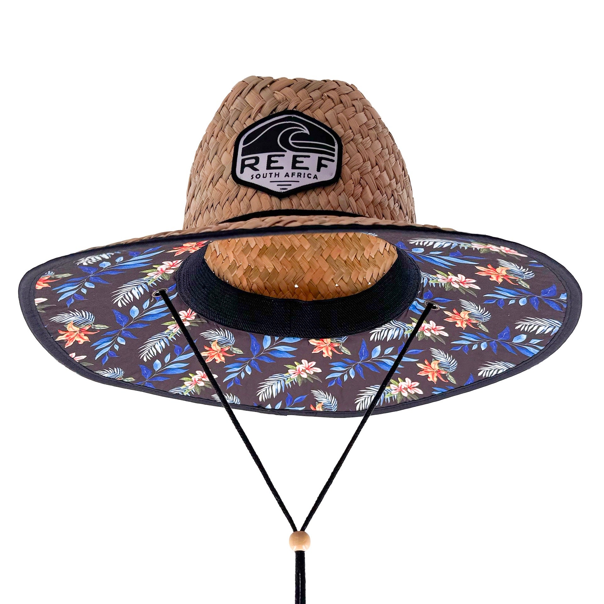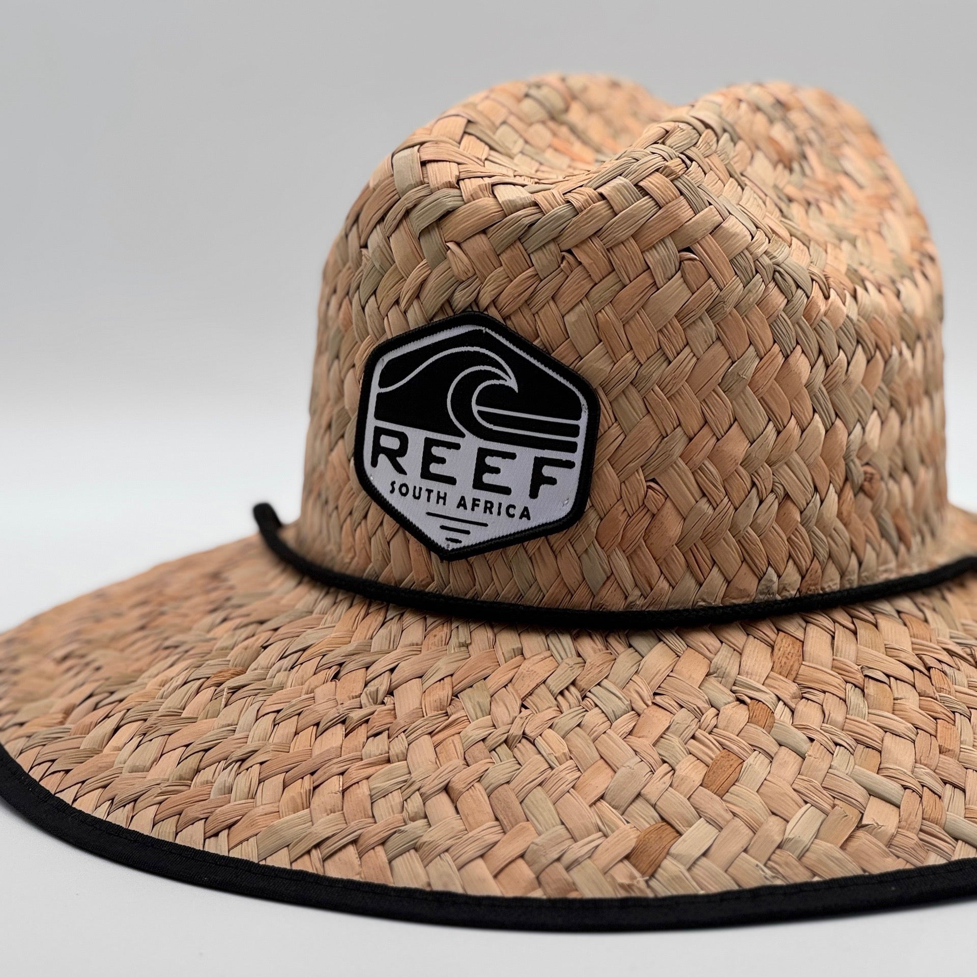 Reef Straw Hat. Fabric: 100% Straw. with a wide Brim and Drawcord with adjustable toggle. Reef woven logo label on centre front.Β