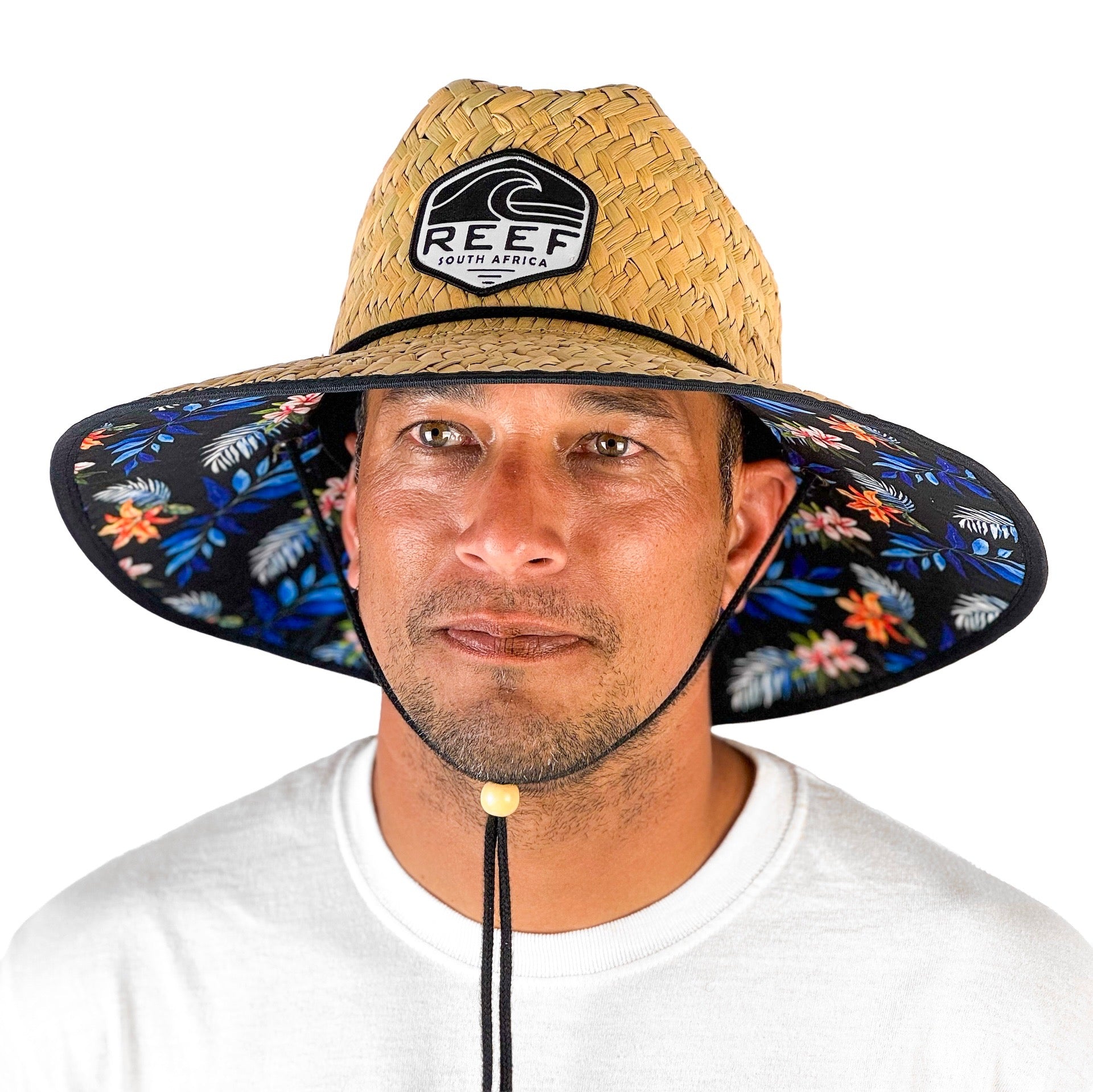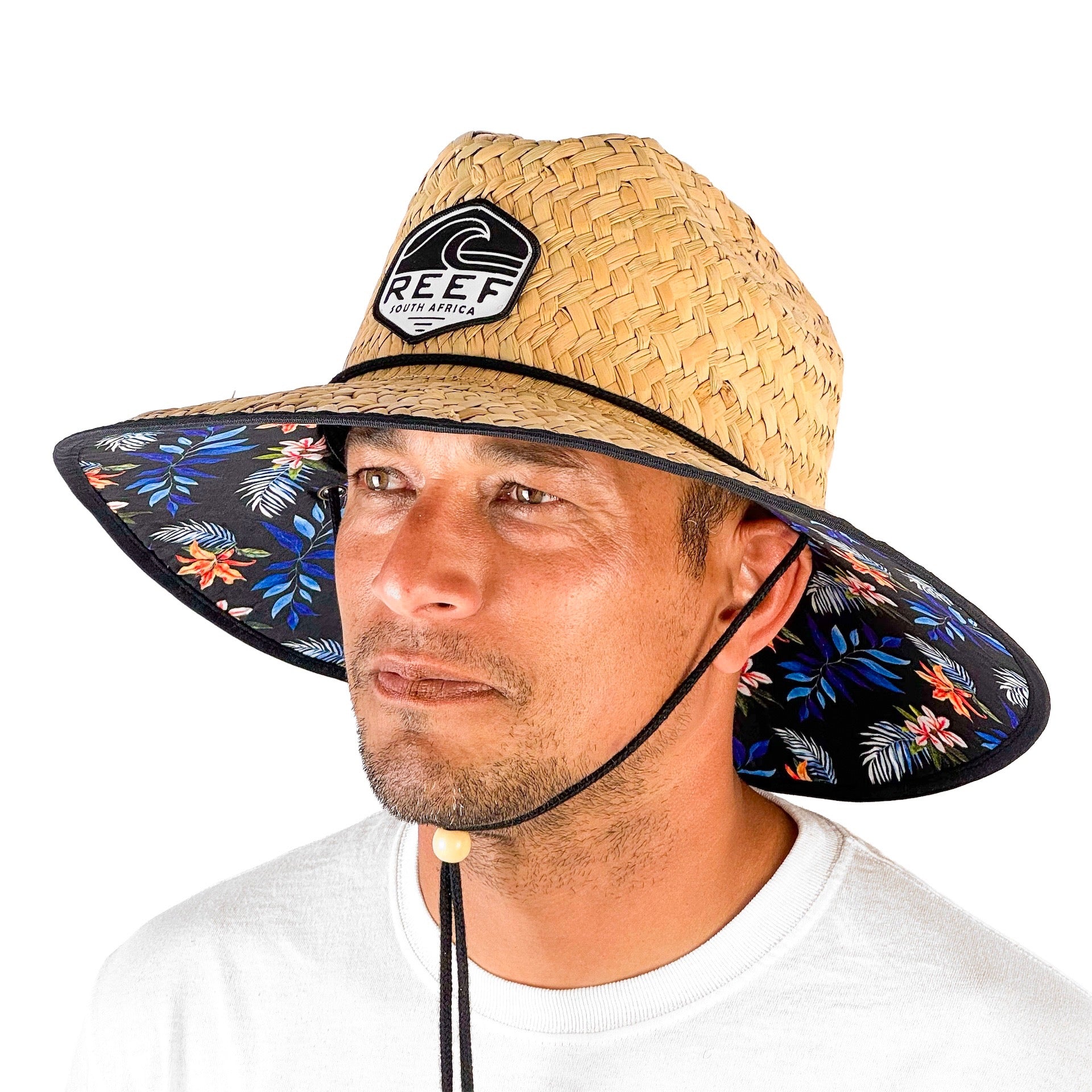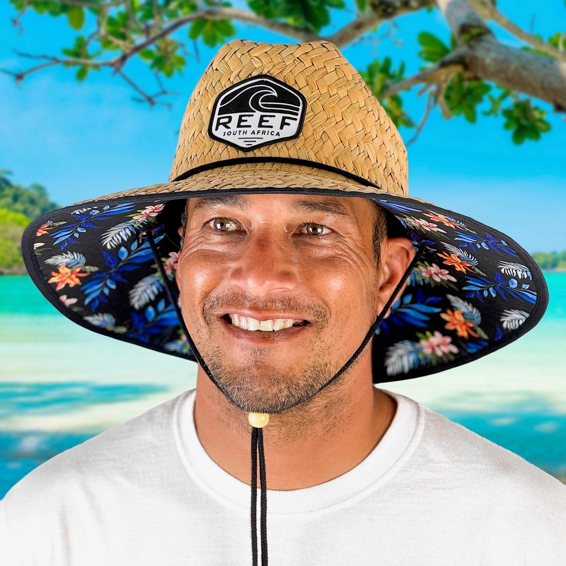 Reef Straw Hat. Fabric: 100% Straw. with a wide Brim and Drawcord with adjustable toggle. Reef woven logo label on centre front.Β