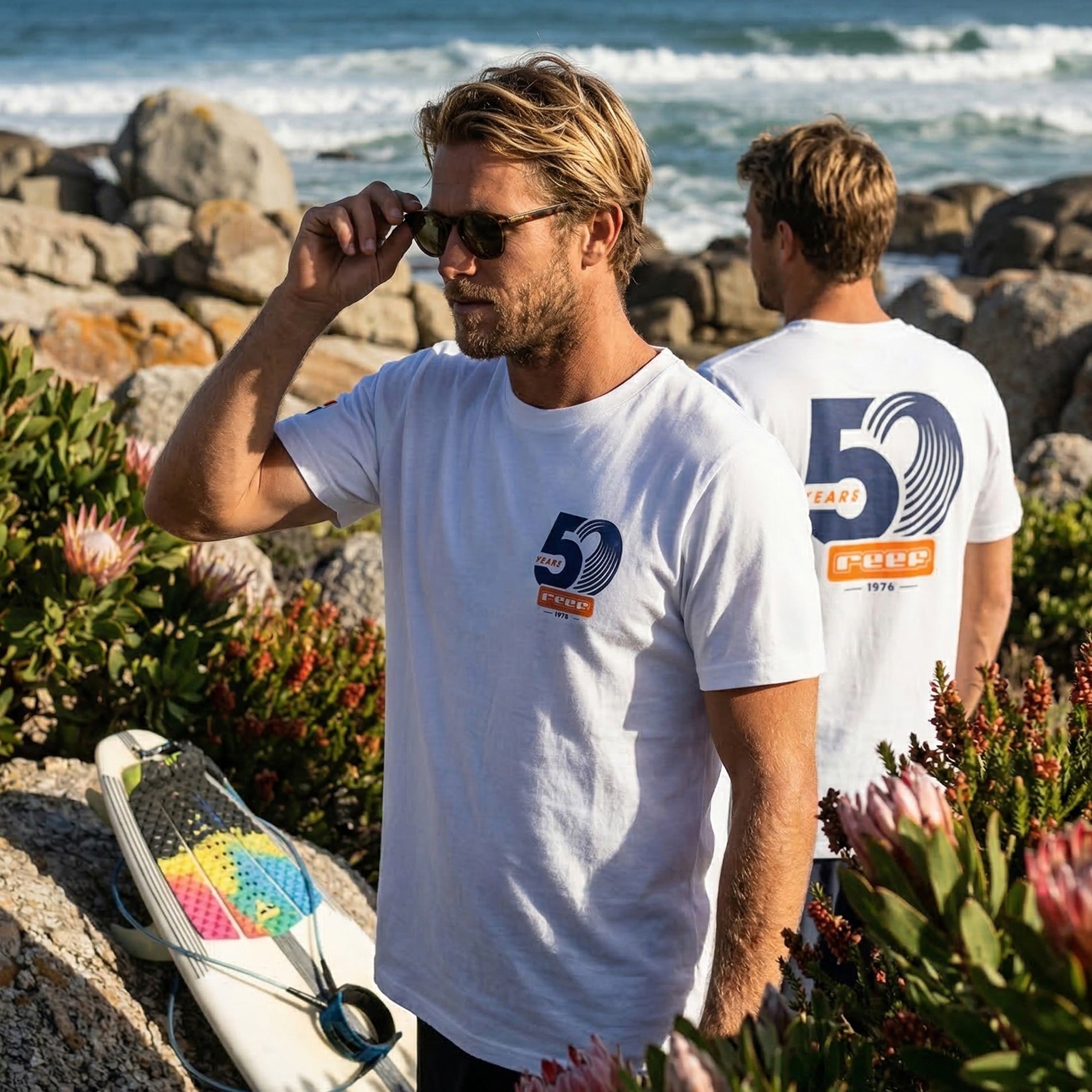50 YEARS OF STOKE. Since 1976, we’ve been deep in the line-up. This limited edition 50th Anniversary Tee celebrates five decades of South African surf culture. Featuring our commemorative wave logo and a comfortable, everyday fit, it’s a piece of history you can wear.