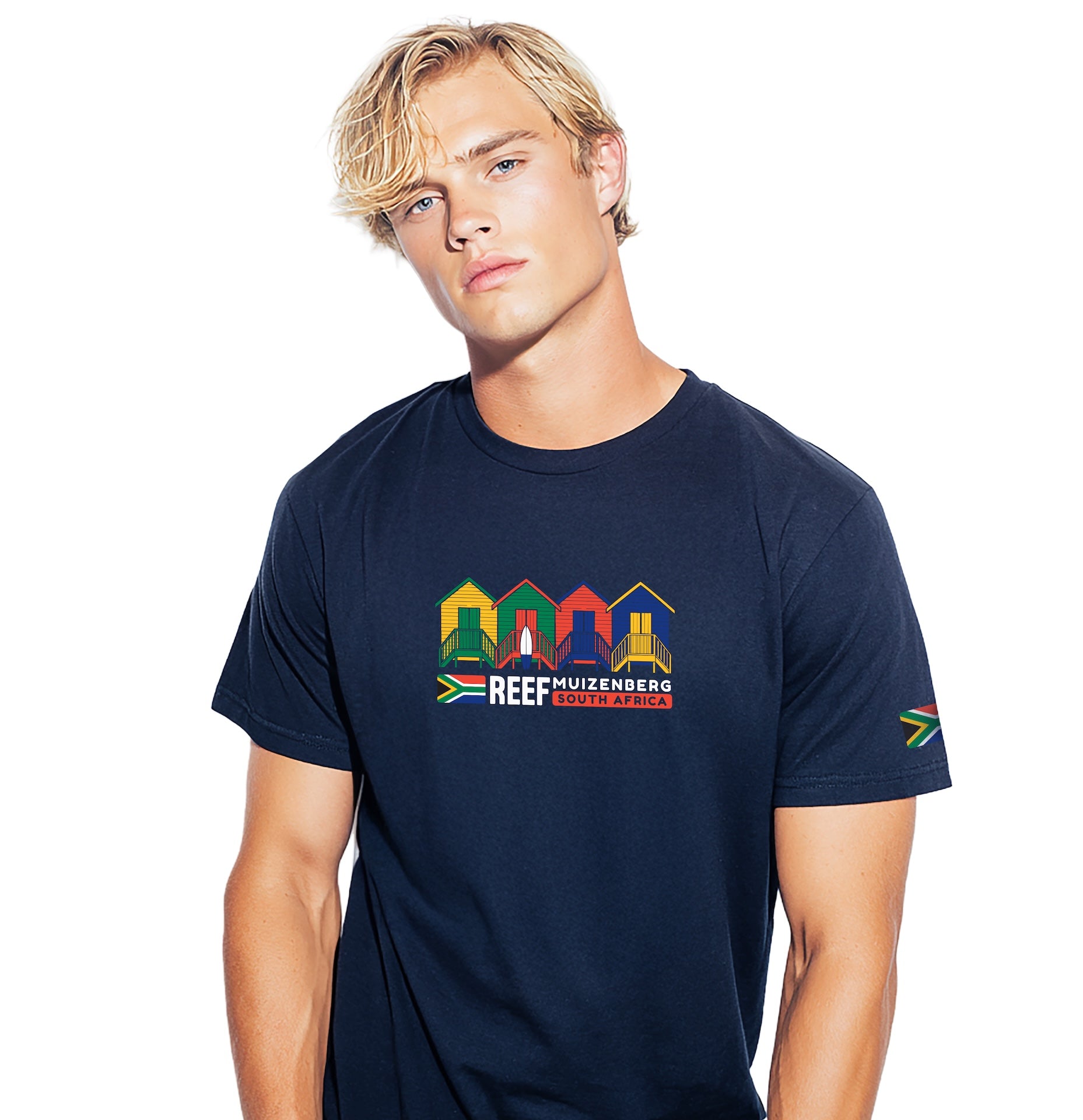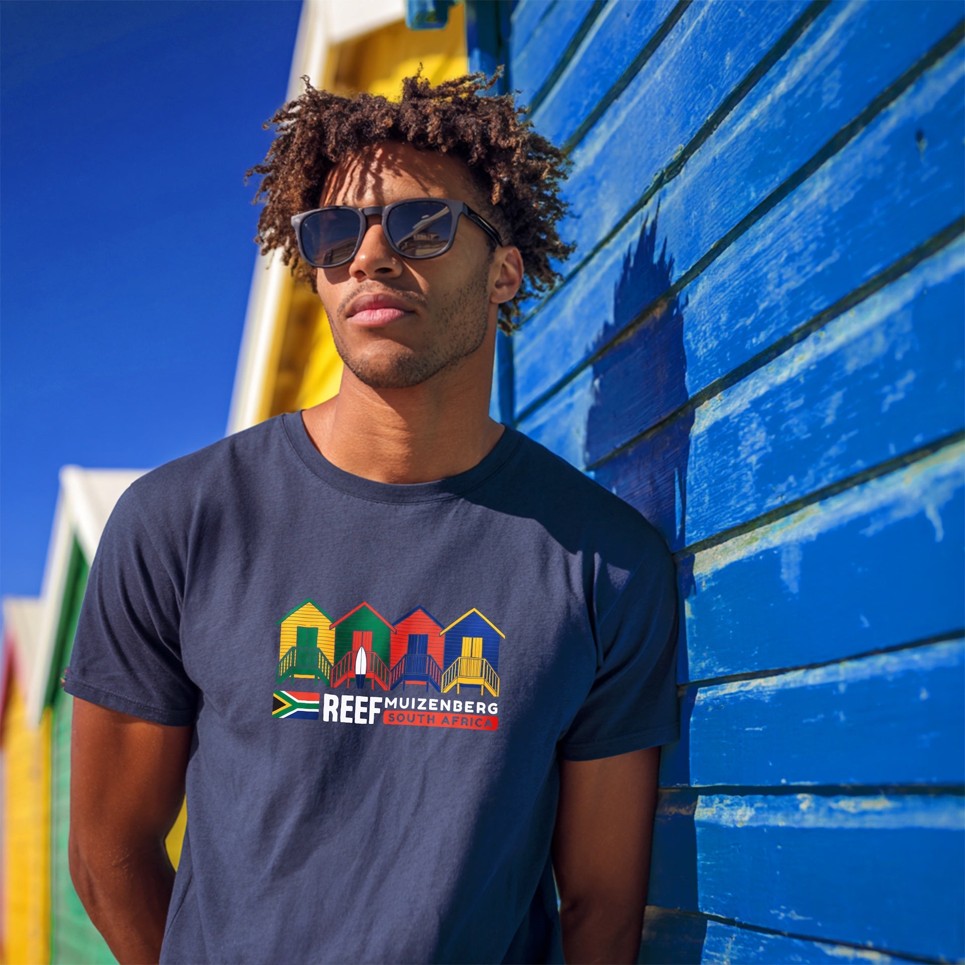 Our regular-fit Reef T-shirt inspired by the Muizenberg beachfront huts is a must-have classic.