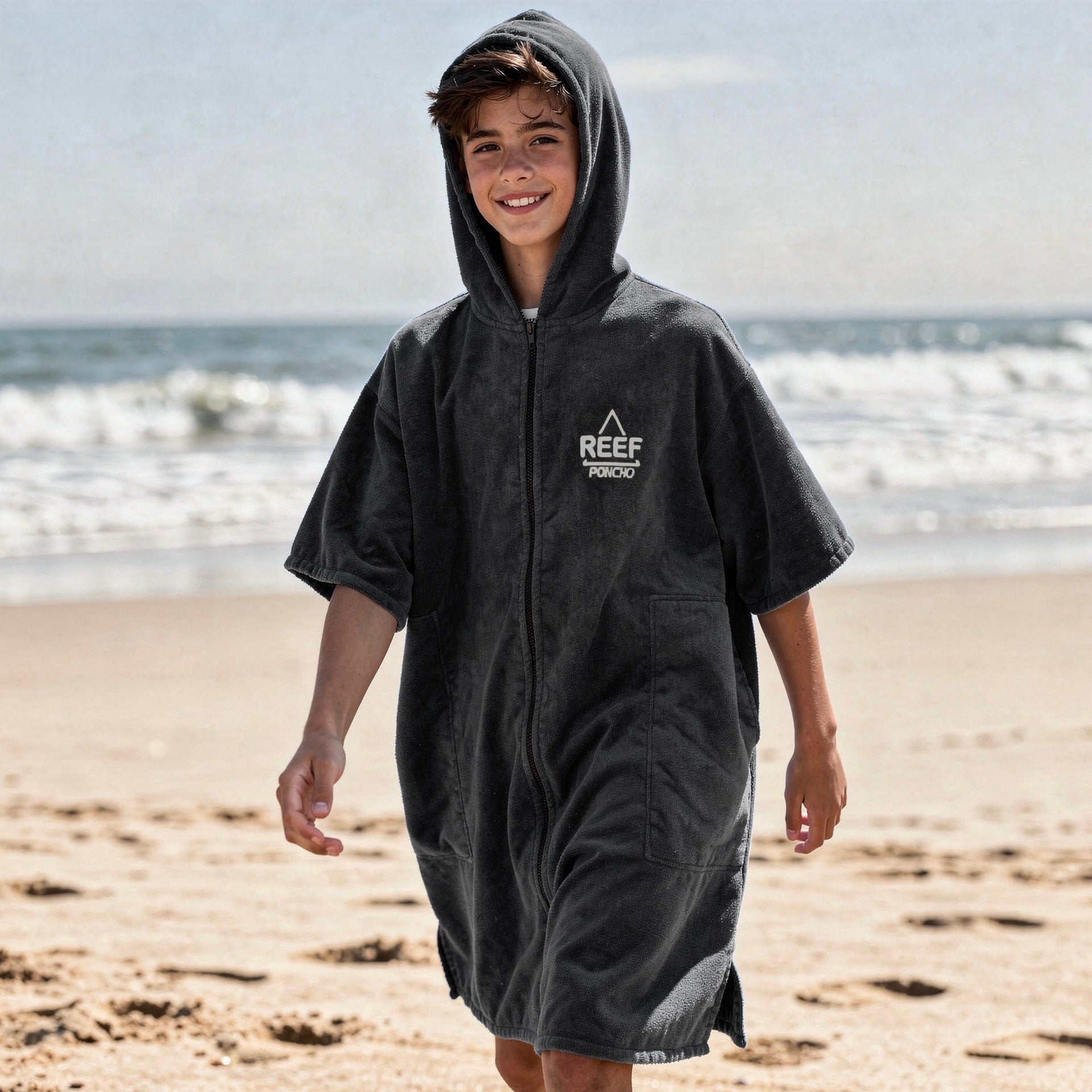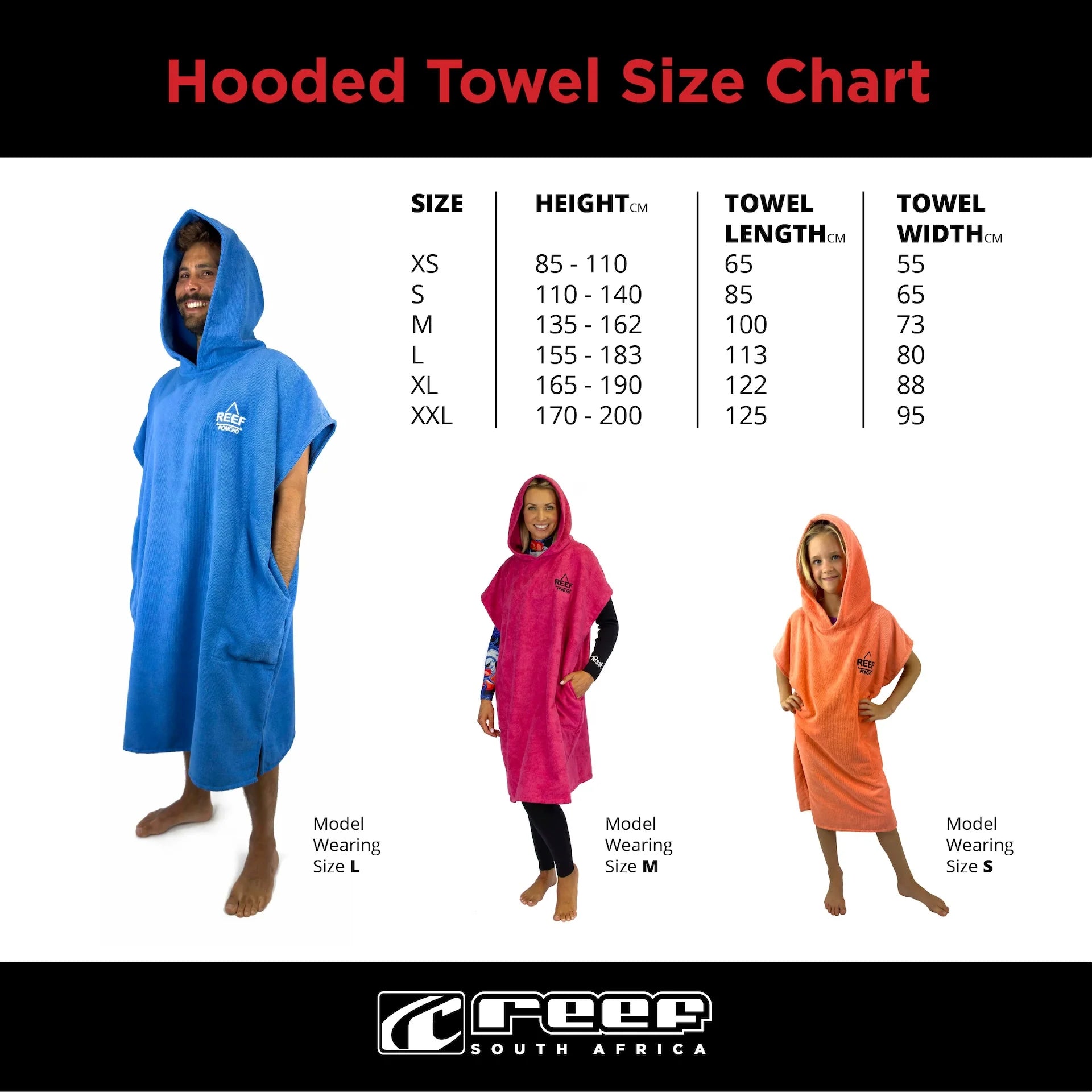 The Reef microfibre hooded towel is the ultimate post water essential for surfers, divers, swimmers and kids.