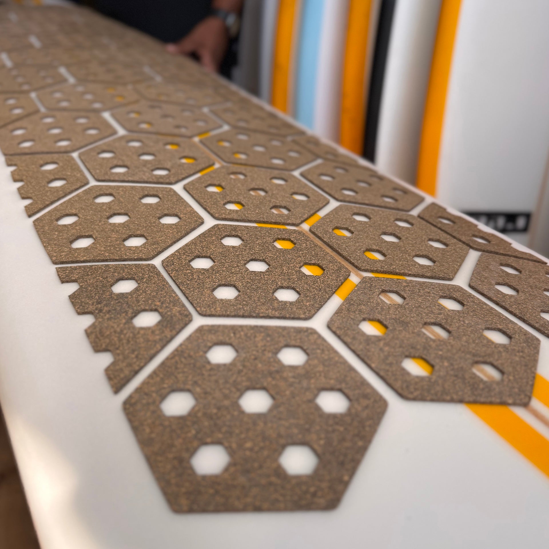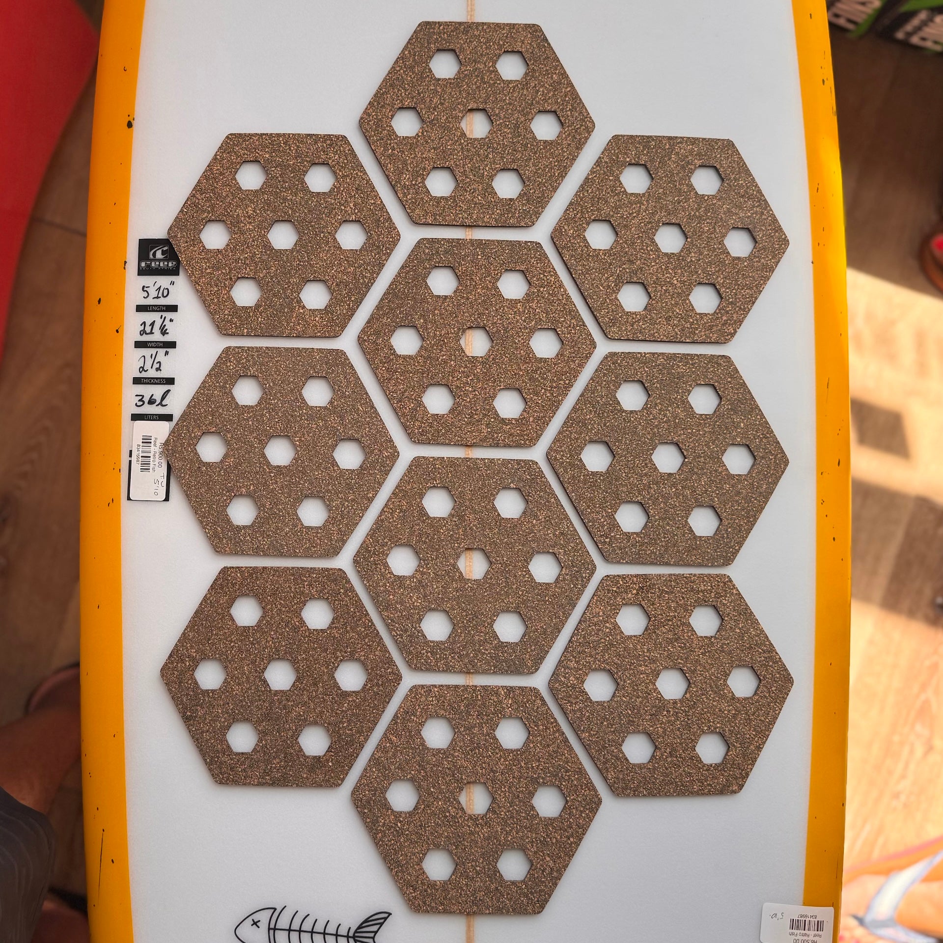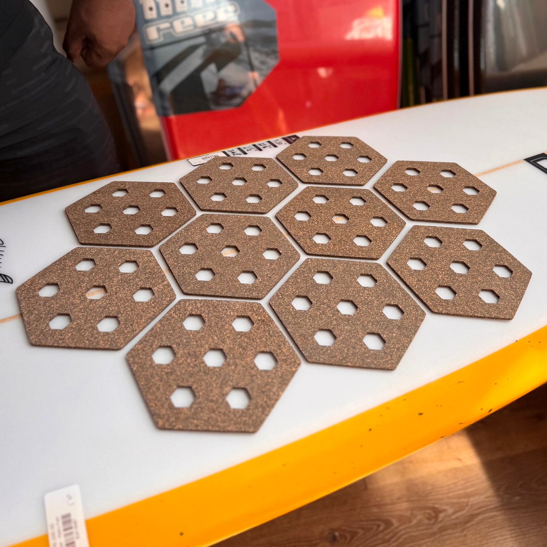 The Reef Hexa Traction is a waxless, modular grip system for surfboards, paddleboards, and other watercraft, that provides temperature-independent traction using interlocking hexagonal pads, eliminating messy surf wax, melting, and maintenance while protecting the board's deck. It's thin, light, UV-protected, waterproof, and offers a clean aesthetic.ย