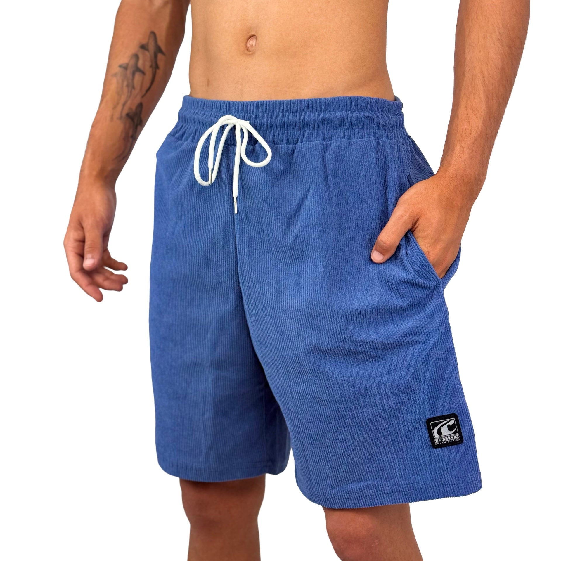 Made of lightweight corduroy, these shorts feature an elasticated waistband with drawstring, two side pockets, and a single back pocket.